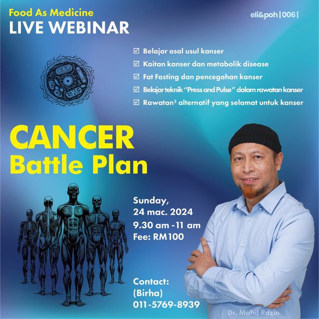 Join Dr Razin Jaafar in the "Cancer Battle Plan" webinar for a comprehensive, expert overview of strategies to support cancer prevention and management. This session offers evidence-based insights into lifestyle, nutrition, and therapeutic approaches designed to enhance resilience and improve patient outcomes. Ideal for those seeking an informed, scientific perspective on navigating cancer care and boosting overall health during treatment.